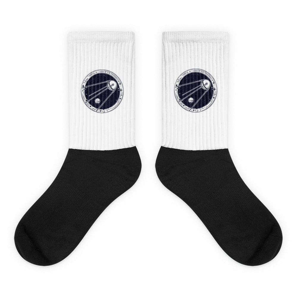 Ces chaussettes sont extrêmement confortables grâce à leur fond rembourré. Elles sont noires au niveau du pied, avec des motifs imprimés aux couleurs vives et éclatantes le long de la jambe.