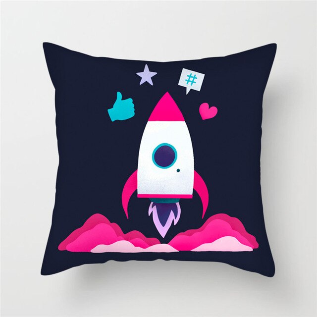 Style 1: Cartoon Spacecraft Cushion Cover