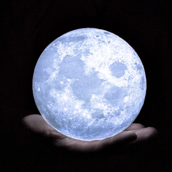 - L’offre comprend : une Lampe Lune + un câble USB + un socle en bois
