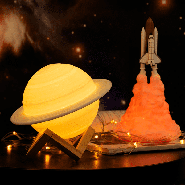 - L’offre comprend : une Lampe Saturne + un câble USB + un socle en bois