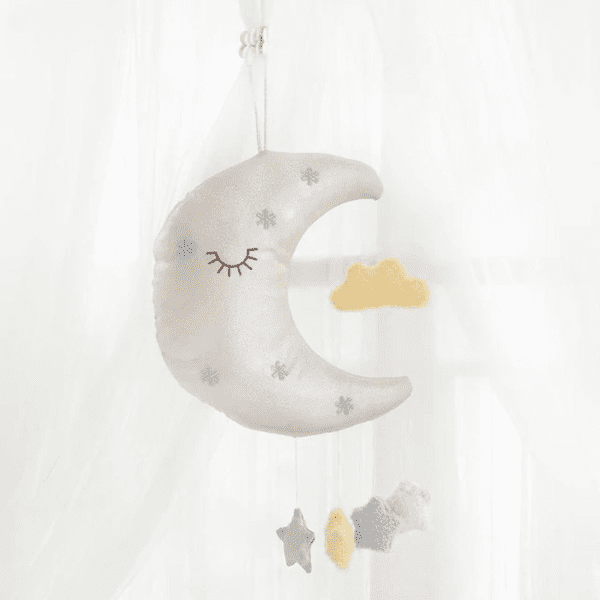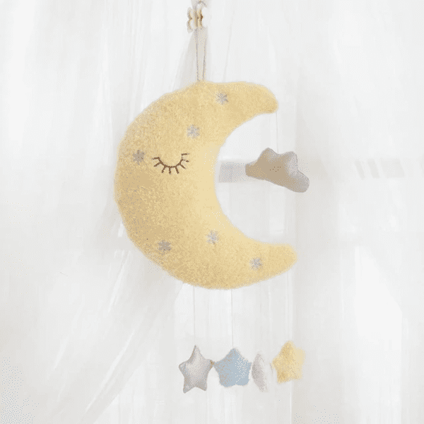 Cette Peluche Lune À Accrocher est l’objet de décoration idéal pour une chambre d’enfant. Rêves cosmiques garantis !