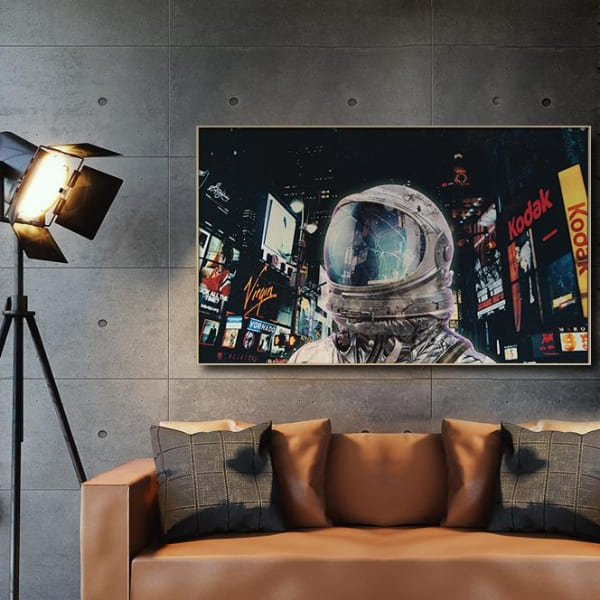 Ajoutez une touche d’art contemporain à votre pièce avec ce Poster Moderne Astronaute Citadin. Cet Astronaute se situe à Time Square.
