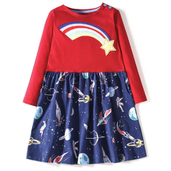 Votre fille adore l’espace ? Optez pour cette Robe Jupe Étoile Filante, elle en sera ravie ! Astronautes, Planètes, Étoiles, Galaxies, Ovnis… Tout y est !