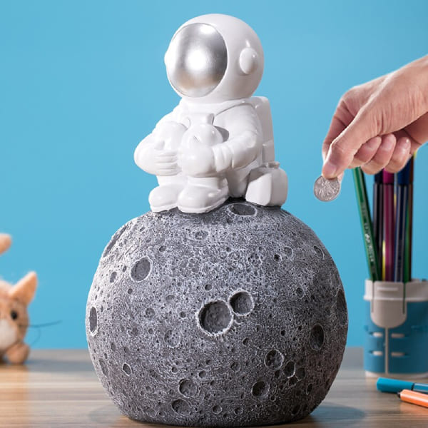 Mettez vos économies à l’abri dans cette Tirelire Spatiale Lune. Ce Petit Astronaute vous les protégera coute que coute !